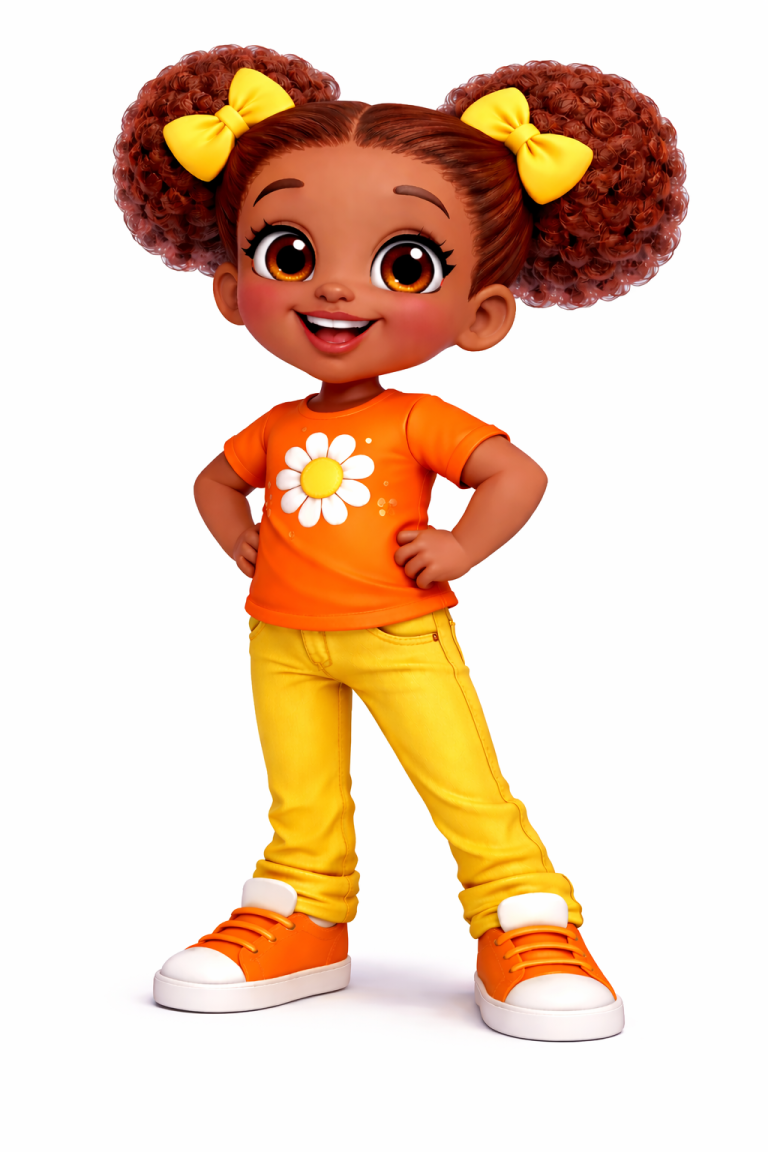 With her signature puff buns and colourful style, she loves to sing, explore, and turn everyday moments into fun adventures.